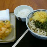 三重県津市久居 イオンタウン津城山ショッピングセンター内 讃岐瀬戸うどん ぶっかけ大380円。 ご飯100円。 海老カキ揚げ180円...