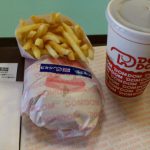 名古屋市千種区 JR千種(ちくさ)駅前。 ドムドムハンバーガー千種店 エビカツバーガーセット。ランチタイムで500円。 ポテトLサイズ...