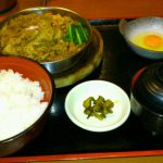 名古屋伏見素材屋すき焼き定食肉大盛り880円。ライス大盛り無料。本日は居酒屋ランチ。ガッツリのすき焼き。煮込まれた柔らかく。鍋底にはうどんが...