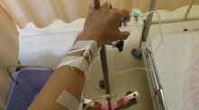 まずは服を脱いでくださいの指示。片腕には点滴をしているため、全体を脱いで点滴のある腕からは服を抜かず台の横にまとめて置く。こんな感じでした。